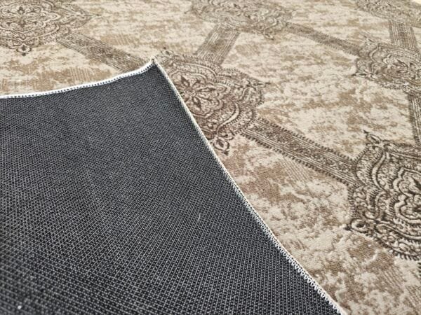 Килимът с противоплъзгаща основа и плюшена повърхност съчетава комфорт, стил и практичност. Изработен е от висококачествени материали – полиестер и полипропилен, което го прави едновременно мек, издръжлив и лесен за поддръжка. Благодарение на мъхестата текстура килимът създава усещане за топлина и уют, а противоплъзгащата основа гарантира стабилност и безопасност при употреба.