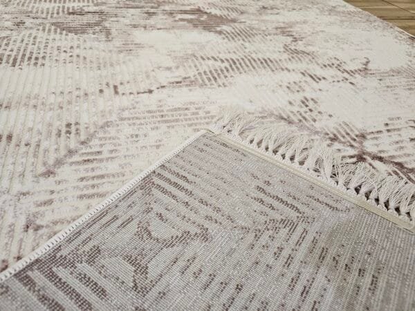 Този килим е изработен от комбинация полипропилен и полиестер, което осигурява отлична устойчивост на износване и минимално задържане на прах. Плътното му тъкане създава къс косъм, който е едновременно мек и издръжлив, подходящ за помещения с висока степен на натоварване. Полипропиленът гарантира устойчивост на влага и лесно почистване, а полиестерът придава лек блясък и мекота, наподобяваща копринена текстура.