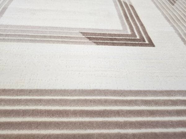 Семплият геометричен или едноцветен дизайн на килима е идеален за разнообразни интериорни решения. Предлага се в класически нюанси, което улеснява съчетаването с вече налични мебели и аксесоари. При геометричните модели дискретните линии и форми внасят деликатен визуален интерес, без да доминират пространството. Монохромният вариант пък добавя усещане за простор и елегантна практичност.