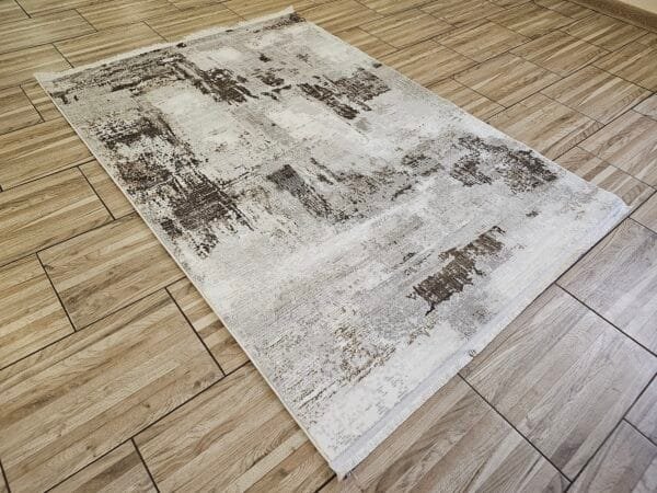 Килима съчетава изискан стил и високо качество. Изработен от устойчив полипропилен и полиестер, той впечатлява с изключително мека и плътна повърхност, която създава усещане за комфорт и топлина. Лекият копринен блясък придава елегантен завършек и подчертава дизайна.